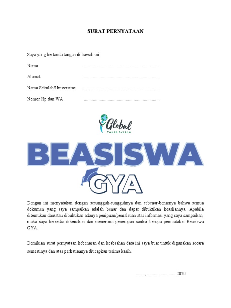 Surat pernyataan keabsahan dokumen beasiswa gya. We did not find results for: Check spelling or type a new query. Maybe you would like to learn more about one of these?